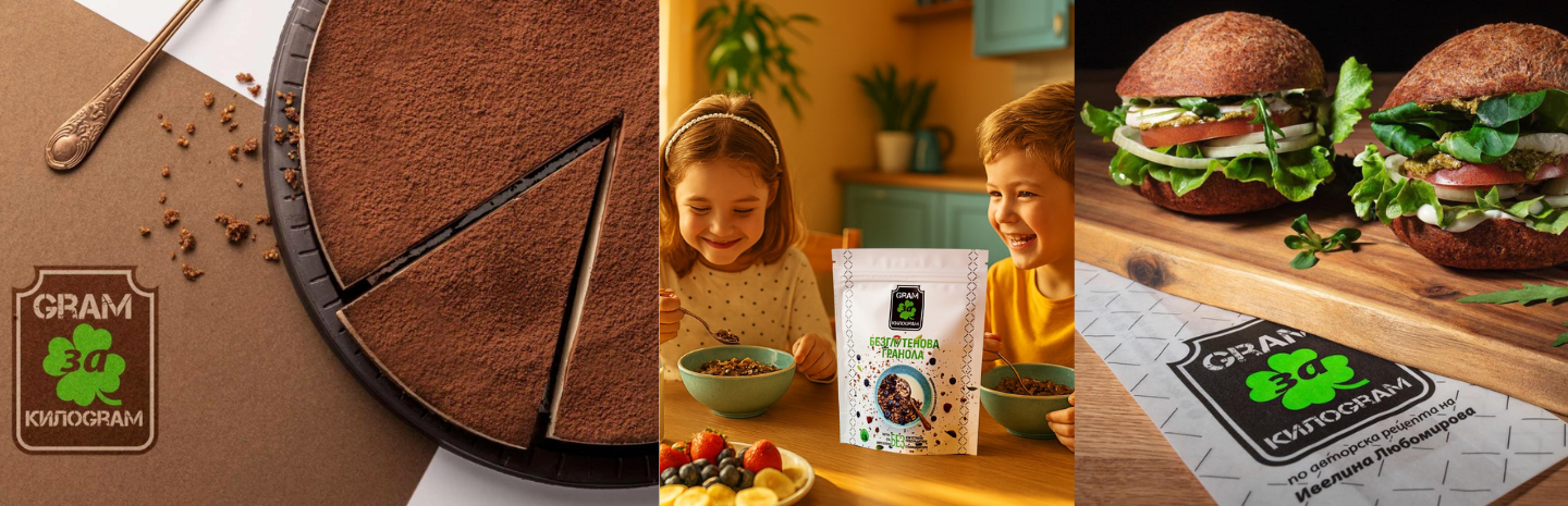 Всички печива се пекат на температура от 160 до 170 градуса, така се застраховаме, че всички качества ще се запазят в крайния продукт. Всички печива се пекат или без форма, или в хартиена! Не ползваме нито тефлон, нито алуминий. Ние от Грам за Килограм можем да предложим хляб за здраве, за диета, за страдащи от глутенова непоносимост, за диабетици, за желаещи да свалят килограми, за страдащи от автоимунни заболявания, за вегетарианци, за вегани - нашите продукти са с много ниско съдържание на въглехидрати.