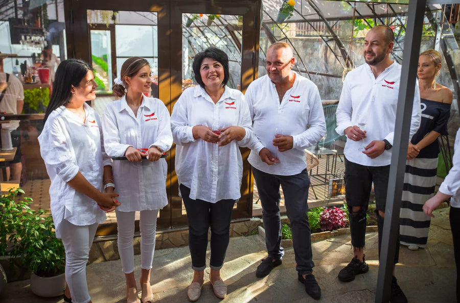 Ние сме семейство Родинови – Христо, Дарина, Елена, Славена и Стоян, и това е нашата история. Историята на първата ферма за люти чушки в България – Люта Ферма, и брандът, който носи топлина и гордост в сърцата ни – Hot Farm. Всичко започна с една на пръв поглед луда идея и се превърна в нашата страст, мисия и семеен бизнес с международно значение.