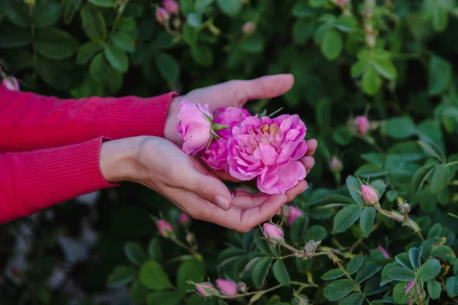 В продуктите на Rosey’s Mark използваме единствено българска маслодайна роза и лавандула от сертифицирано биологично земеделие с гарантиран произход българската Долина на Розите. Така подкрепяме опазването на околната среда и биологичното разнообразие, както и дългосрочното запазване на биологичното отглеждане на емблематичната роза в България. Работим с фермери, розопреработватели и производствени партньори, които споделят нашите ценности за чиста земя, почва и вода.