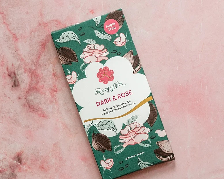 Съставки: какаова маса, малтитол, какаово масло, емулгатор (соев лецитин), естествен ароматизант ванилия, био розови
