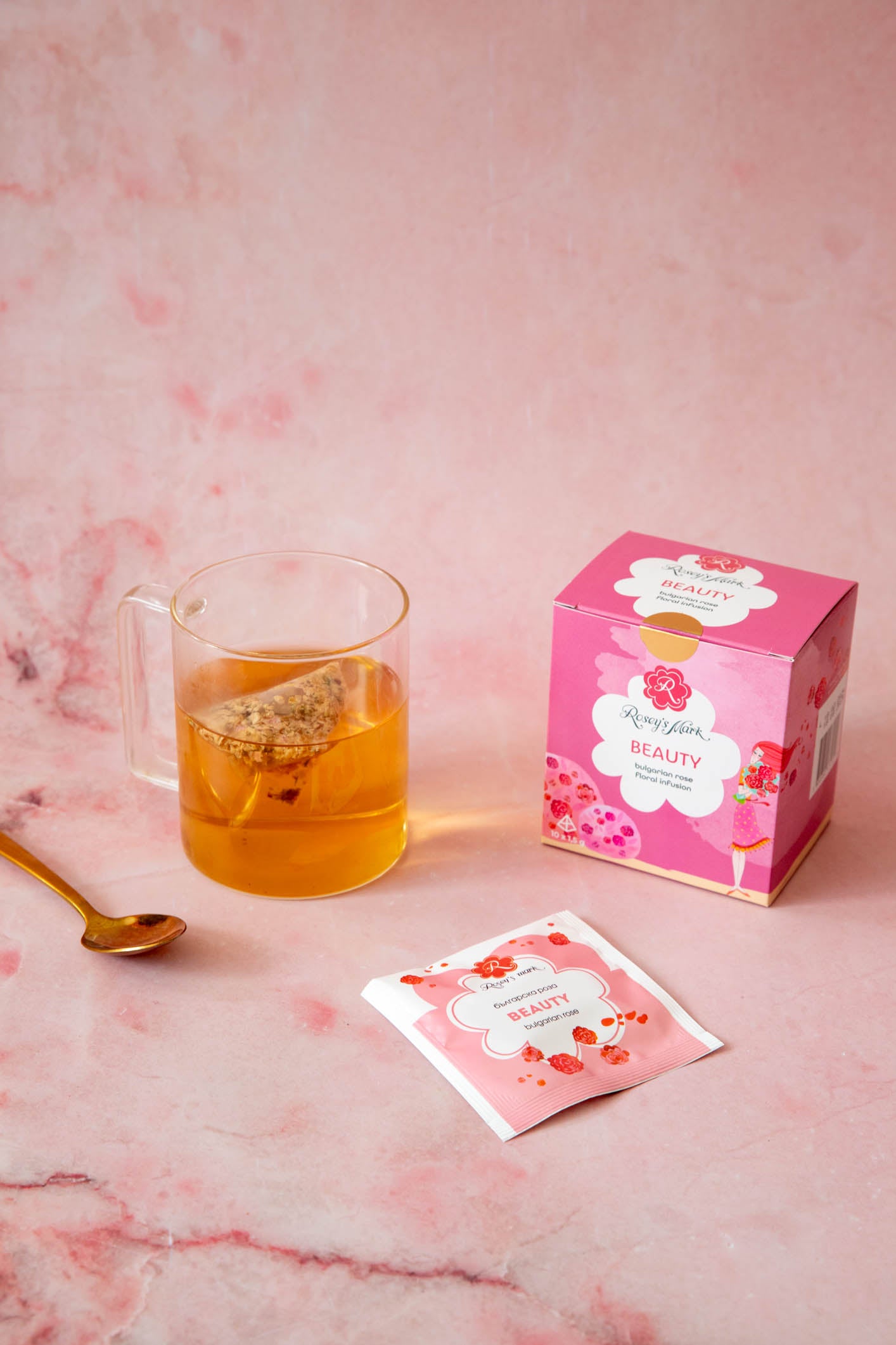 Чай на пакетчета тип пирамидки от 100% българска роза дамасцена от биологично земеделие. Кутията съдържа 10 бр. индивидулано опаковани чаени пирамидки.