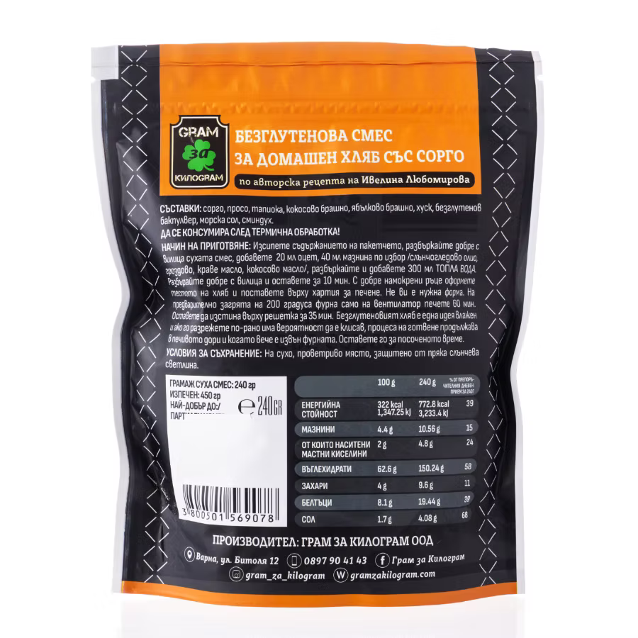 Безглутенова смес за домашен хляб със сорго - 240 гр