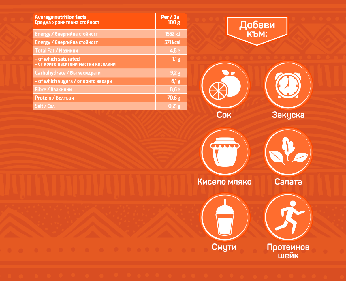 12 естествени съставки за по-голяма сила (65% протеин), енергия и редовен метаболитен детокс
