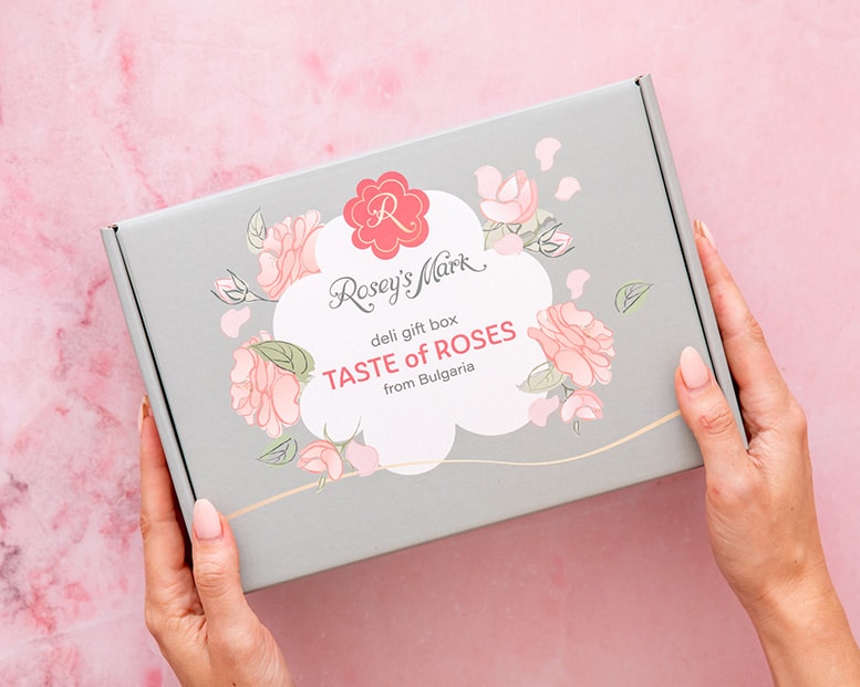 Луксозна кутия с продукти от българска роза: тъмни, млечни и бели шоколади, сладко от рози, сладко от рози и ягоди, насипен чай от роза и лавандула. Ръчно опакована, подходяща за специални поводи.