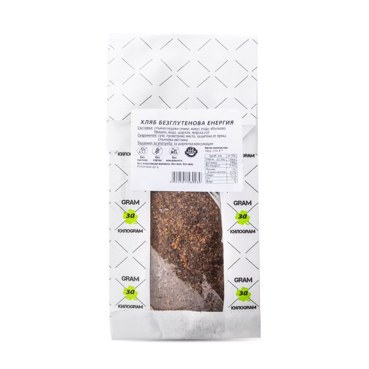 - Съставки: Слънчогледови семки, вода, ябълково брашно, елда, нахут, морска сол